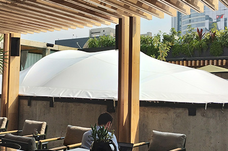 En 2023, el icónico Hotel Volga en la Ciudad de México decidió instalar un domo arquitectónico que complementara su estilo moderno y sofisticado. Orbital diseñó una estructura personalizada con membranas de alta resistencia y un diseño elegante que encajaba perfectamente con la arquitectura del hotel.